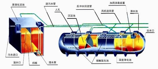 3、生化池采用生物接觸氧化法,其填料的體積負荷比較低,微生物處于自身氧化階斷,產(chǎn)泥量少,僅需三個月(90天)以上排泥(用糞車抽吸或脫水成泥餅外運)。
